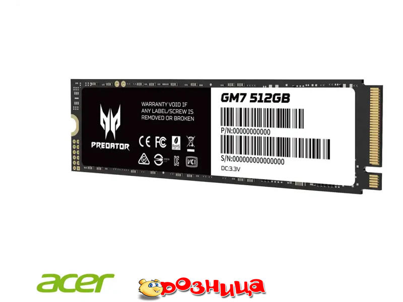 Acer Predator GM7 512GB M.2 2280 NVMe PCIe Gen4 x4 TCL BL.9BWWR.117; SSD/HDD: NAND SSD M.2 2280 M.2 NVMe PCIe Gen4 x4 512ГБайт 0об/мин