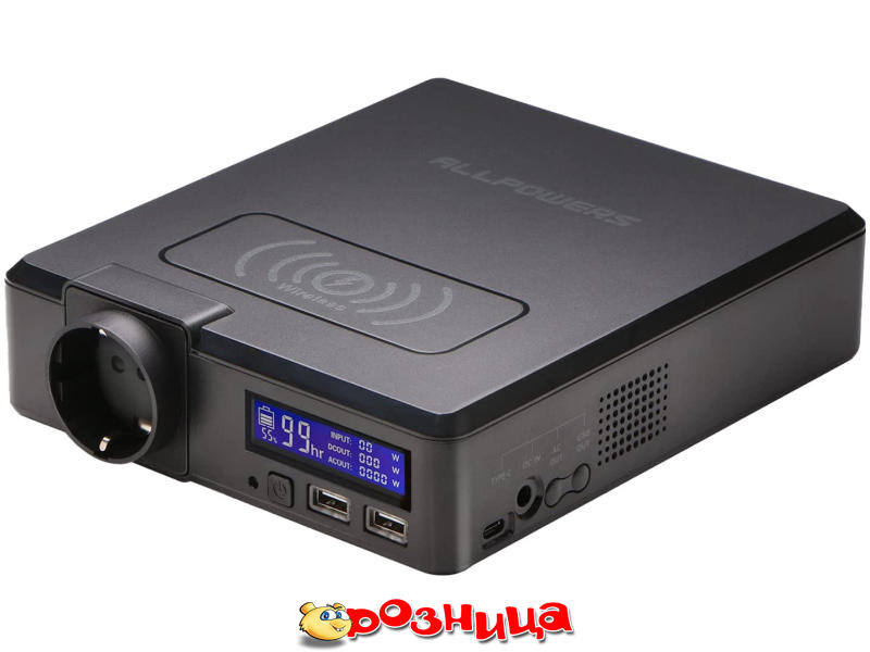 | Описание | Зарядна станція Allpowers S200 154Wh 41600mAh 200W Portable Power Bank, 220V (Shuko), 2*USB, Type-C, Wireless Charger |