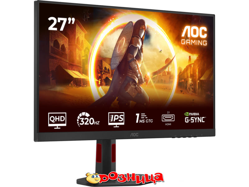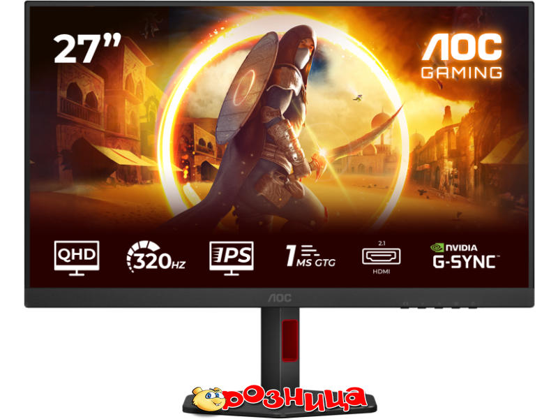 AOC Gaming Monitors Q27G4SRU; Дисплей: LED 27" IPS 2560x1440 1000:1 Adaptive-Sync, HDR; Цвет: Чёрный; Разъёмы: AC, DisplayPort, HDMI, USB, Для наушников; Габариты (ШхВхГ и вес): 613.9мм 516мм 227.6мм 6.11кг