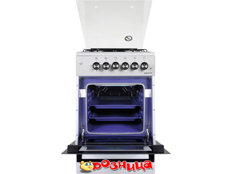 APETITO 50 10-E WHITE; Характеристика плиты: Отдельностоящая Комбинированная; Характеристика варочной поверхности: + 4 Квадрат Газовая Механический +; Характеристика духовки: 55л Электрическая