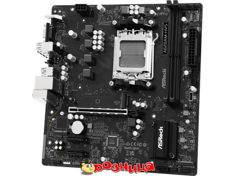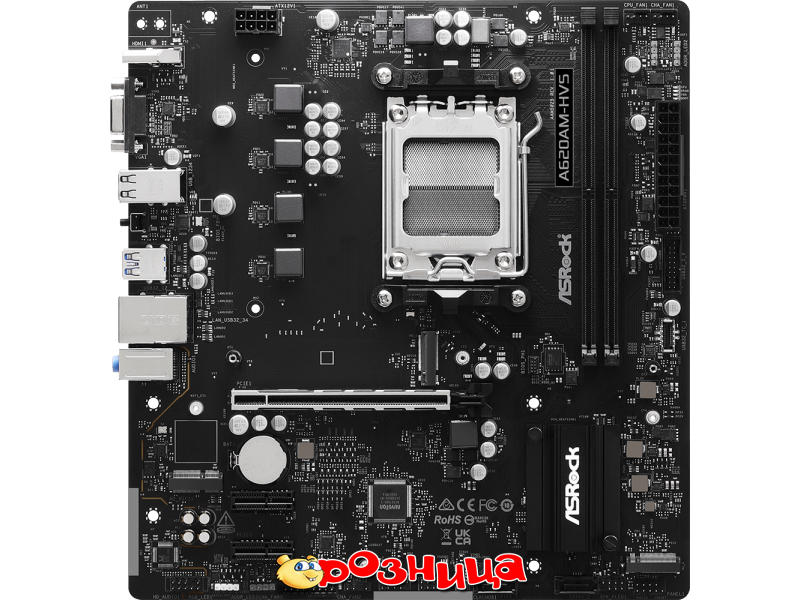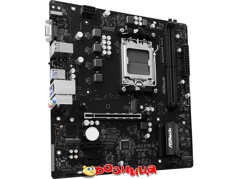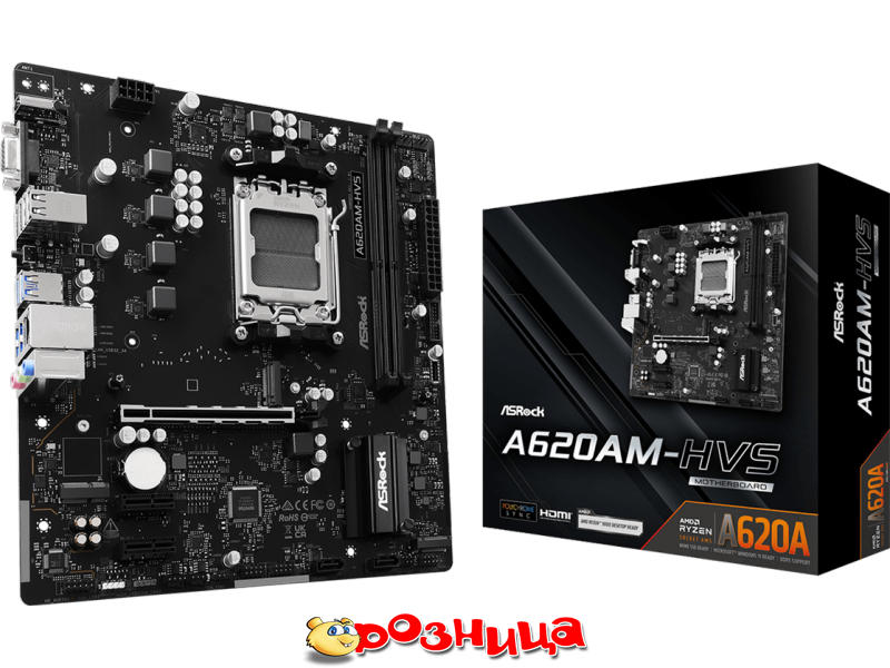 ASRock A620AM-HVS; Характеристика материнской платы: AM5 AMD A620A DDR5 SDRAM 2шт 10/100/1000Мбит Micro-ATX