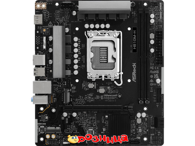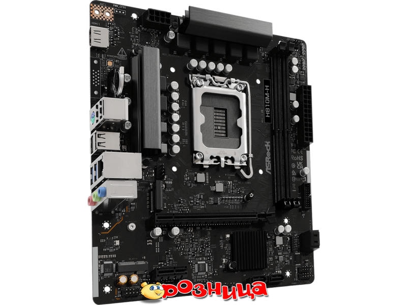 ASRock H810M-H; Характеристика материнской платы: LGA 1851 Intel H810 DDR5 SDRAM 2шт 10/100/1000Мбит Micro-ATX
