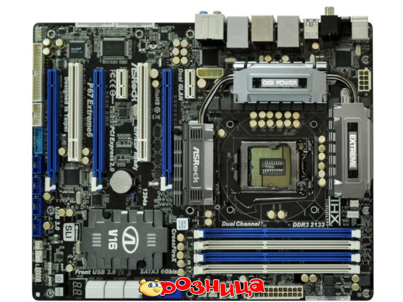 ASRock P67 EXTREME6; Характеристика материнской платы: LGA 1155 Intel P67 Express DDR3 SDRAM 4шт 10/100/1000Мбит ATX