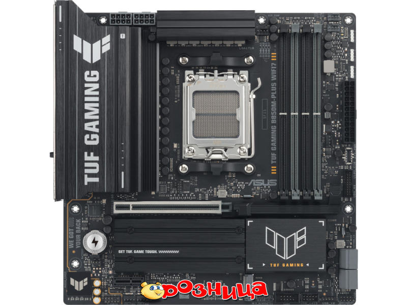 ASUS TUF GAMING B850M-PLUS WIFI7 90MB1MU0-M0EAY0; Характеристика материнской платы: AM5 AMD B850 DDR5 SDRAM 4шт 10/100/1000/2500Мбит Micro-ATX