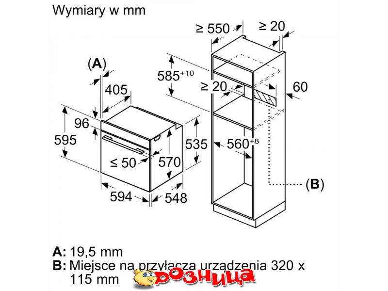 | Встраиваемая высота | 595 мм |