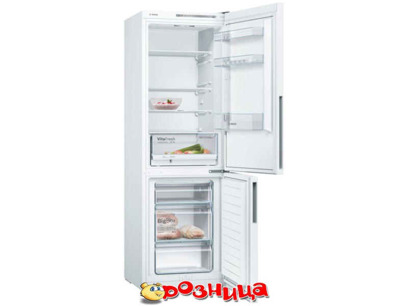 Bosch KGV36UW206; Характеристика холодильника: Отдельностоящий Снизу Двухкамерный Электронный 308л 214л 94л Статическая; Морозильное отделение: 94л; Цвет: Белый; Габариты (ШхВхГ и вес): 600мм 1860мм 650мм