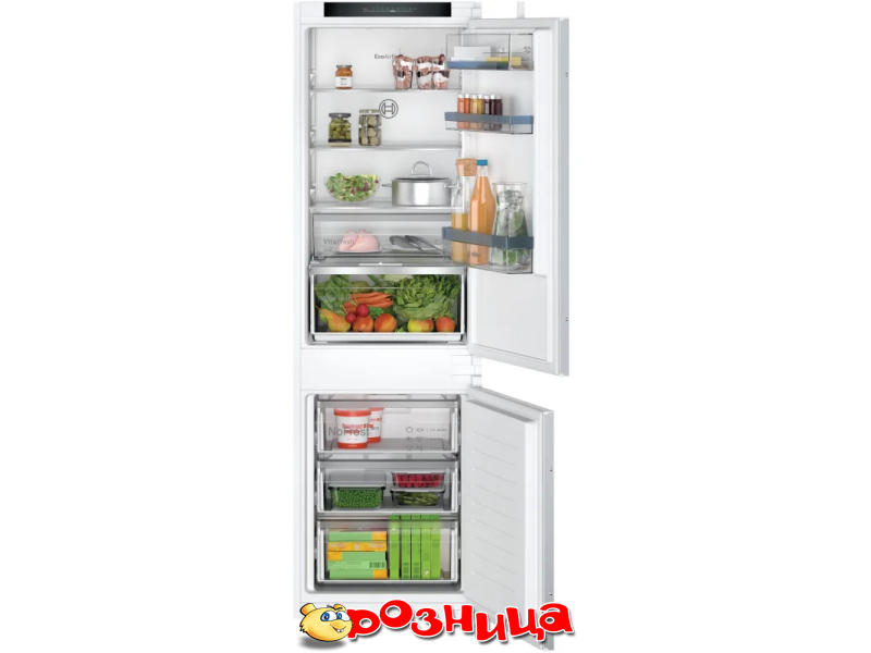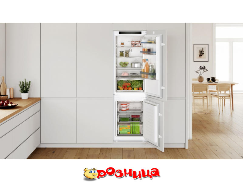 Bosch KIN86VSE0; Характеристика холодильника: Встраиваемый Снизу Двухкамерный сенсорное 260л 184л 76л No Frost; Морозильное отделение: 76л; Цвет: Белый; Габариты (ШхВхГ и вес): 541мм 1772мм 548мм 560мм 1775мм 550мм 52.5кг