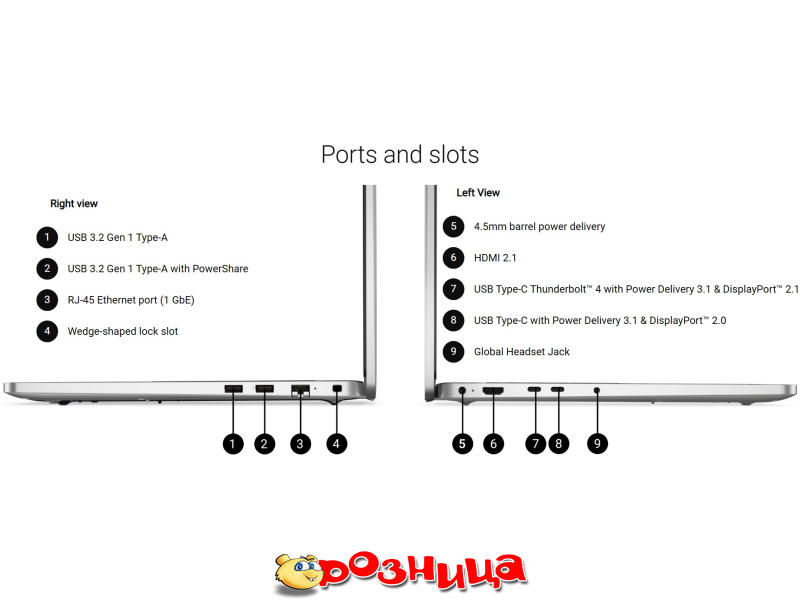 | Входы | DC, HDMI, RJ45, Thunderbolt, USB, USB Type-C, Комбинированный аудио разъем |