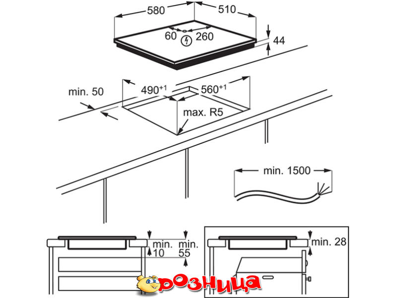 | Встраиваемая ширина | 560 мм |