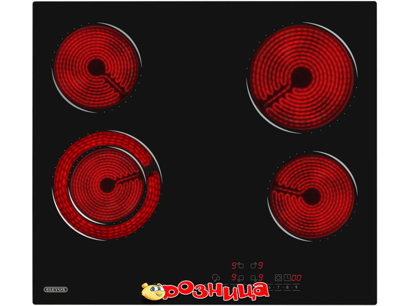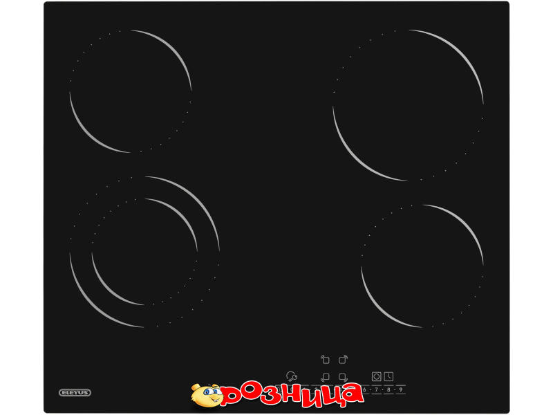 ELEYUS H3EBHG SL 60 BL V1; Характеристика варочной поверхности: 4 Встраиваемая Квадрат Фронтальное Электрическая Сенсорный; Цвет: Чёрный; Габариты (ШхВхГ и вес): 580мм 55мм 510мм 560мм 75мм 480мм