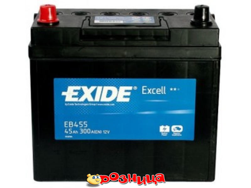 Exide Excell 45Ah EB455; Характеристика аккумулятора: 12В 45А/ч 300А B00 1 (стандартной / прямой полярности) тип 1 «+» 19.5мм ; «-» 17.9мм; Габариты (ШхВхГ и вес): 234мм 220мм 127мм 11кг