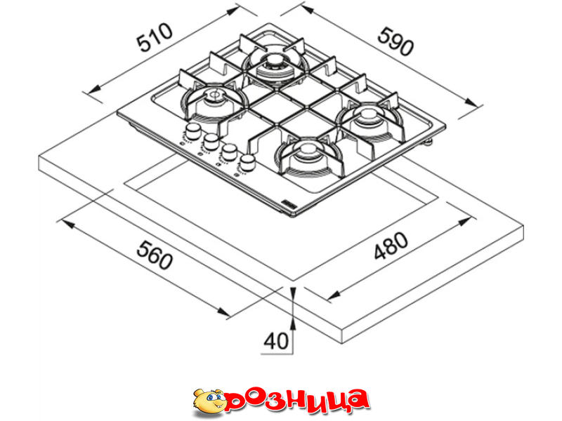 Franke FHMA 604 3G DC MB C 106.0670.112; Характеристика варочной поверхности: + 4 Встраиваемая Квадрат Фронтальное Газовая Механический +; Цвет: Чёрный; Габариты (ШхВхГ и вес): 590мм 510мм 560мм 480мм