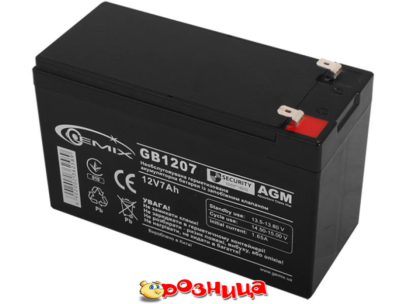 Gemix 12V 7AH (GB1207), Black, AGM; Характеристика аккумуляторной батареи: 12В 7Ач Свинцово-кислотна; Габариты (ШхВхГ и вес): 150мм 90мм 63мм