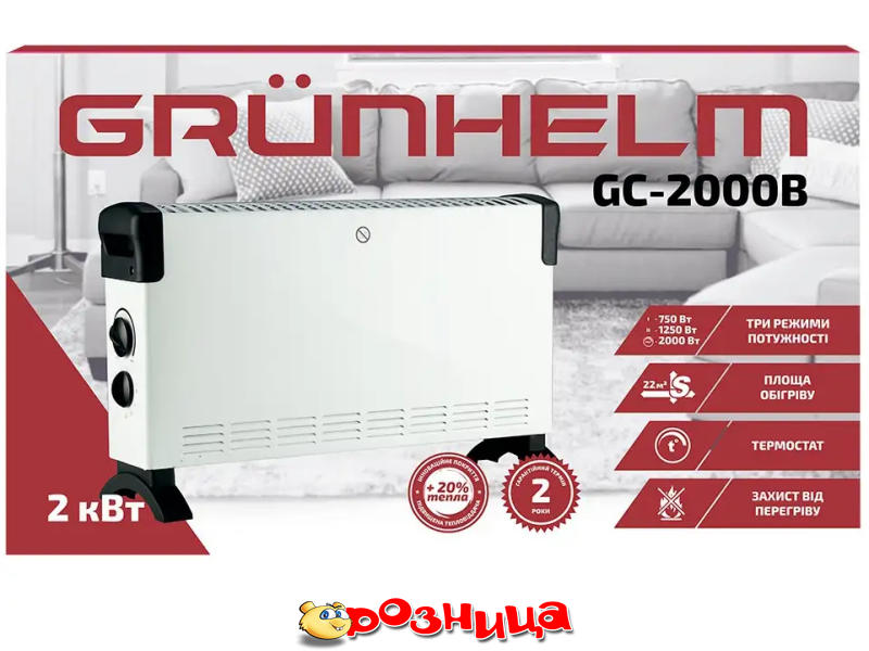 | Описание | Обігрівачі | Grunhelm | Обігрівач Grunhelm GC-2000B | GC-2000B | 2000 Вт, механічне | warranty 12 |