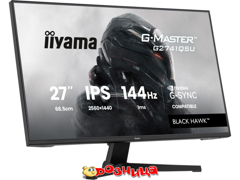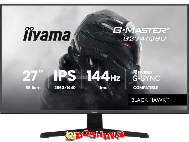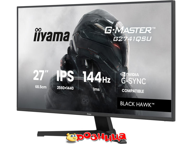 iiyama Black Hawk G-MASTER G2741QSU-B1; Дисплей: LED 27" IPS 2560x1440 1500:1 Adaptive-Sync, NVIDIA G-Sync; Цвет: Чёрный; Разъёмы: AC, DisplayPort, HDMI, USB, Для наушников; Габариты (ШхВхГ и вес): 613мм 433.5мм 349мм 4кг