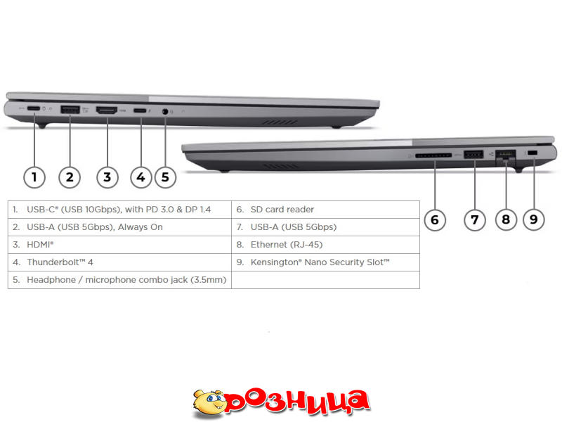| Входы | HDMI, RJ45, Thunderbolt, USB, USB Type-C, Комбинированный аудио разъем |