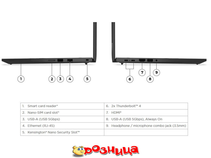 Входы HDMI, RJ45, Thunderbolt, USB, Комбинированный аудио разъем