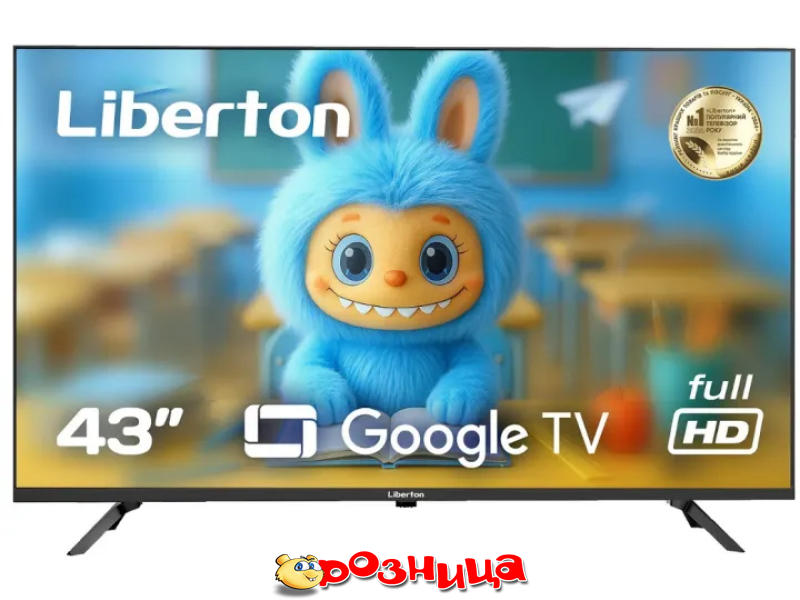 Liberton LTV-43U02GT; Дисплей: LED 43" 3840x2160; Дополнительные функции телевизора: Есть; Разъёмы: HDMI, RJ45, USB, Вход RF, Для наушников 2шт 2шт; Tuner: DVB-C, DVB-T2; Цвет: Чёрный; Аксессуары: VESA (200x200)