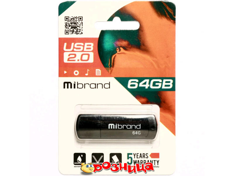 Mibrand Grizzly 64GB Black USB 2.0 MI2.0/GR64P3B; Flash: 64ГБайт USB 2.0 USB 2.0; Цвет: Чёрный