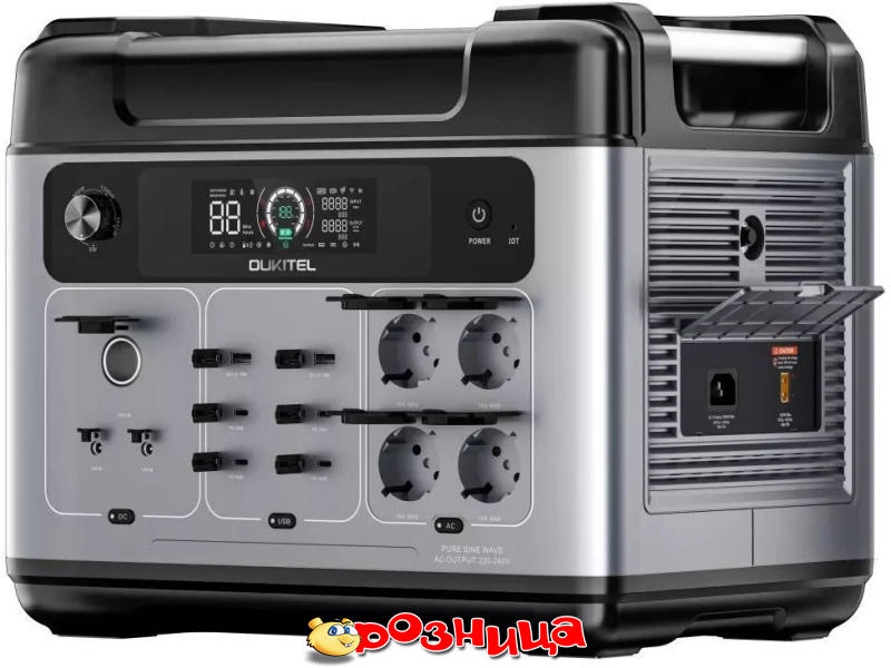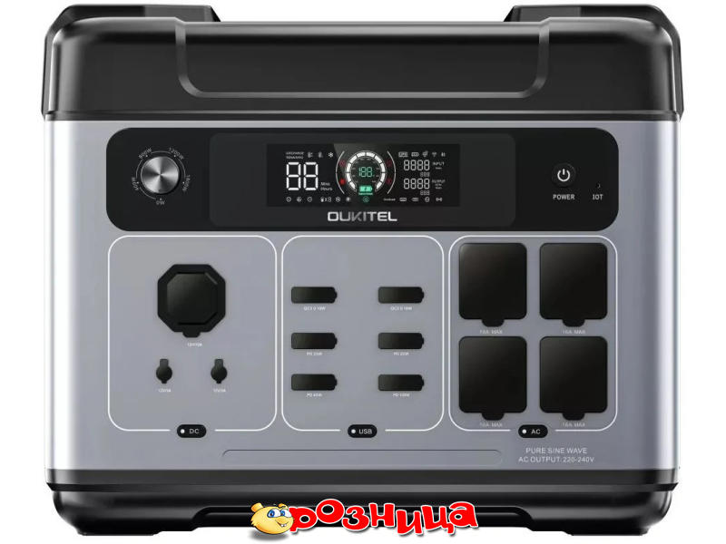 Oukitel P2001 PLUS Portable Power Station 2400W/2048Wh P2001_PLUS; Характеристики портативных зарядных станций: 2400Вт 2048Вт/час; Характеристика аккумуляторной батареи: LiFePO4; Цвет: Серый; Габариты (ШхВхГ и вес): 394мм 330мм 279мм 22кг