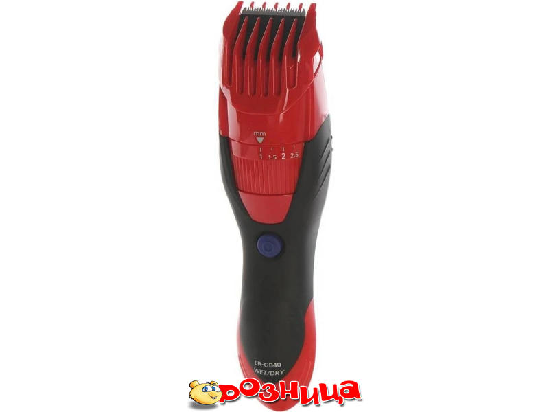 Panasonic ER-GB40-R520; Характеристика машинки для стрижки волос: для бороды и усов, для стрижки головы 1 1мм 10мм 8ч 500мин аккумулятор, сеть; Цвет: Красный, Чёрный