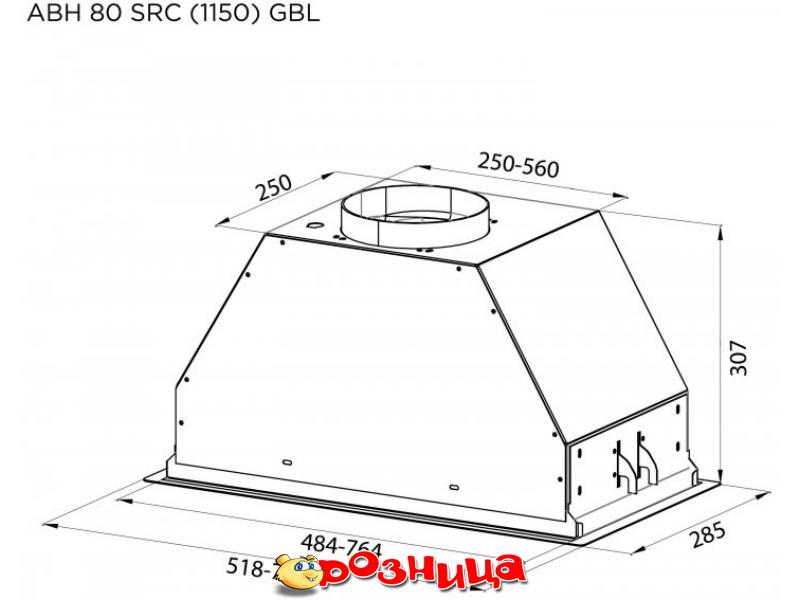 Pyramida ABH 80 SRC (1150) GBL; Характеристика вытяжки: Встраиваемая 1 1150м³/ч