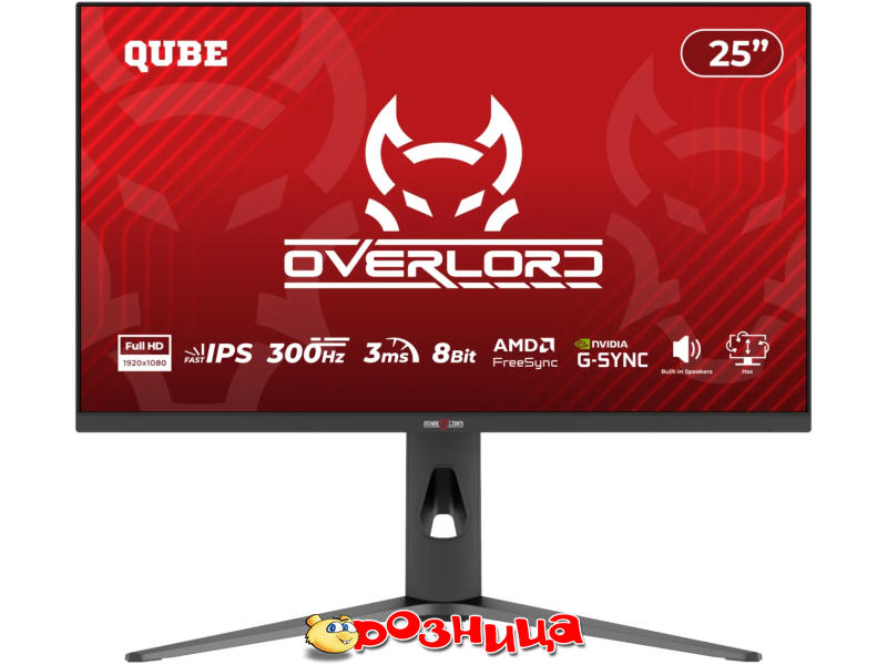 | Описание | Монітор 25 QUBE Overlord G25F300H / 1920x1080 (FHD) / IPS / 300Hz / 1ms / HAS /HDMI 1.4 + DP 1.2 / Speakers, RGB, G25F300H |