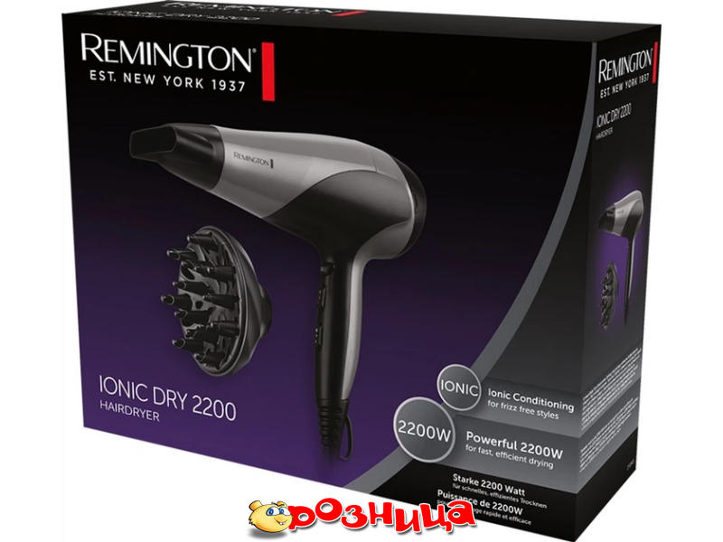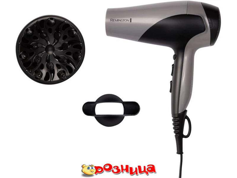 REMINGTON D3190S IONIC DRY; Характеристика фена/характеристика выпрямителя для волос: обычный фен 2200Вт; Цвет: Нержавеющая сталь, Чёрный