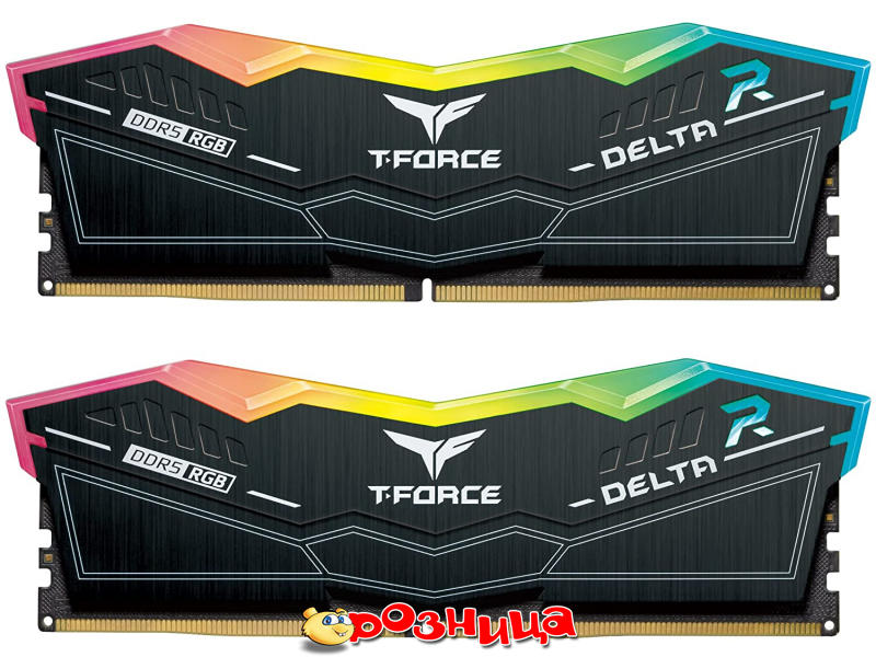 Team T-Force Delta RGB Black DDR5 32GB (2x16GB) 6400MHz CL40 Kit FF3D532G6400HC40BDC01; RAM: Для настольных ПК 2шт 16384МБайт DDR5 SDRAM 6400МГц; Электропитание: 1.35Вольт