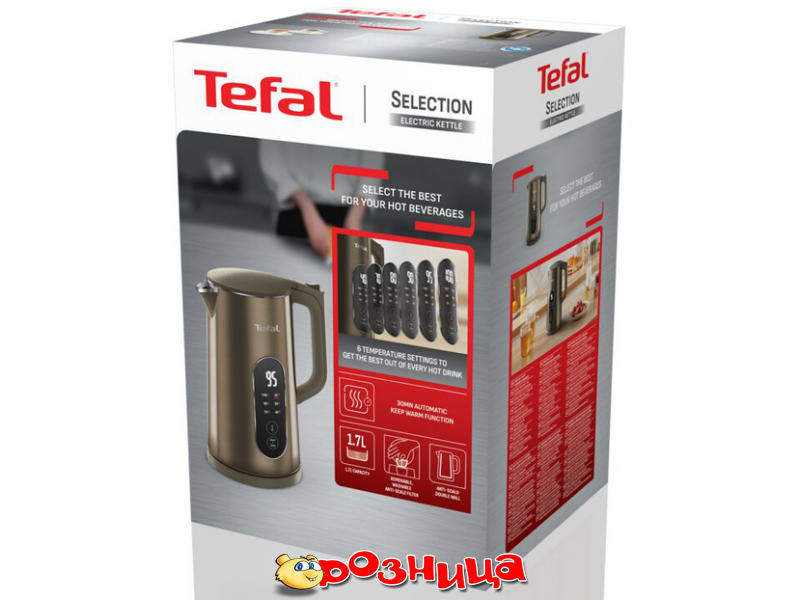 | Описание | Tefal HA | ПОБУТОВА ТЕХНІКА ТА ТОВАРИ | Електрочайники | KI871FE0 | Електрочайник Tefal Selection 1.7л, з подвійними стінками, 6 темп.реж, підтримка температури, сенc. управління, бронзовий | warranty 12 |