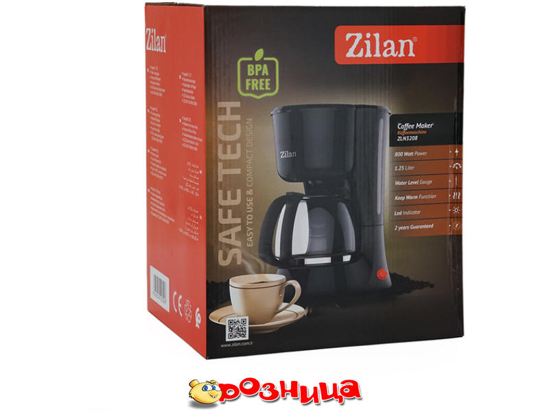ZILAN ZLN3208; Характеристика кофеварки: Внешне стоящая Капельная 800Вт Пластик; Цвет: Чёрный